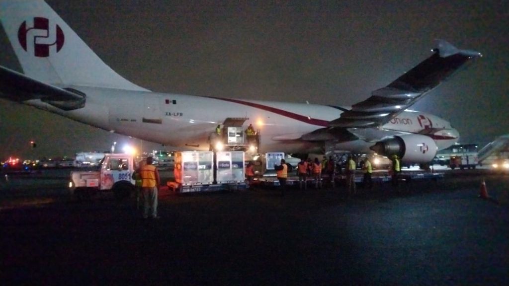 CDMX. El Administrador General de Aduanas, Horacio Duarte Olivares informó que este viernes se recibió el embarque más grande de vacunas contra el COVID-19 con 2 millones 395 mil 300 dosis de la farmacéutica AstraZeneca, en la Aduana del Aeropuerto Internacional de la Ciudad de México.
