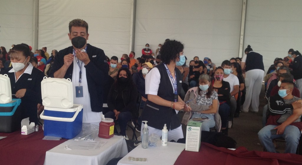 En el lugar el doctor Carlos Alberto Benítez Fadul, Jefe de la Jurisdicción Sanitaria Teotihuacan, informó que se atiende a las personas en un horario de ocho de la mañana y hasta las cinco de la tarde con todas las medidas sanitarias y sobre todo atendidos por personal del Instituto de Salud del Estado de México (ISEM); enfermeras y enfermeros quienes tienen la mejor actitud de apoyar a la población.