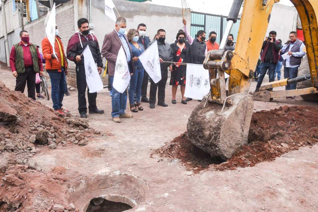 Acolman, Edomex. En distintas acciones el presidente municipal de Acolman Rigoberto Cortés Melgoza dio0 el banderazo para el inicio de obra para la construcción del drenaje sanitario en la calle Benito Juárez, en la comunidad de Tepexpan con una inversión que supera lo 350 mil pesos.