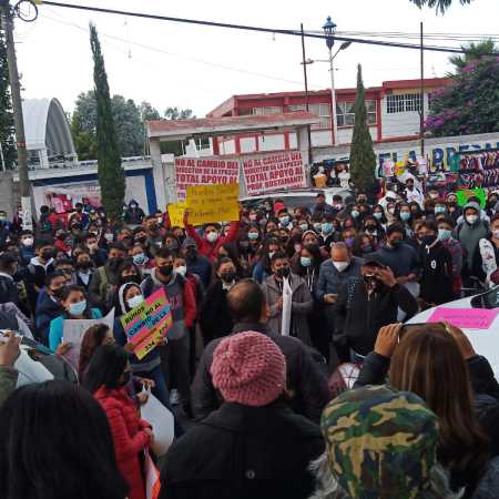 Padres de familia se manifiestan en preparatoria en Chiconcuac