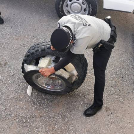Aduanas localiza en batea y llanta de refacción 33 paquetes de probable marihuana