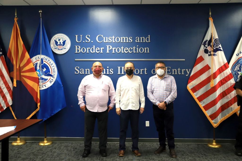 Durante su gira de trabajo por Sonora, el Administrador General de Aduanas, Horacio Duarte Olivares se reunió con autoridades de la Agencia de Aduanas y Protección Fronteriza de los Estados Unidos (CBP), por sus siglas en inglés, para trabajar y coordinar proyectos que permitan agilizar el despacho aduanero conjunto y reforzar el comercio exterior en Aduanas fronterizas.