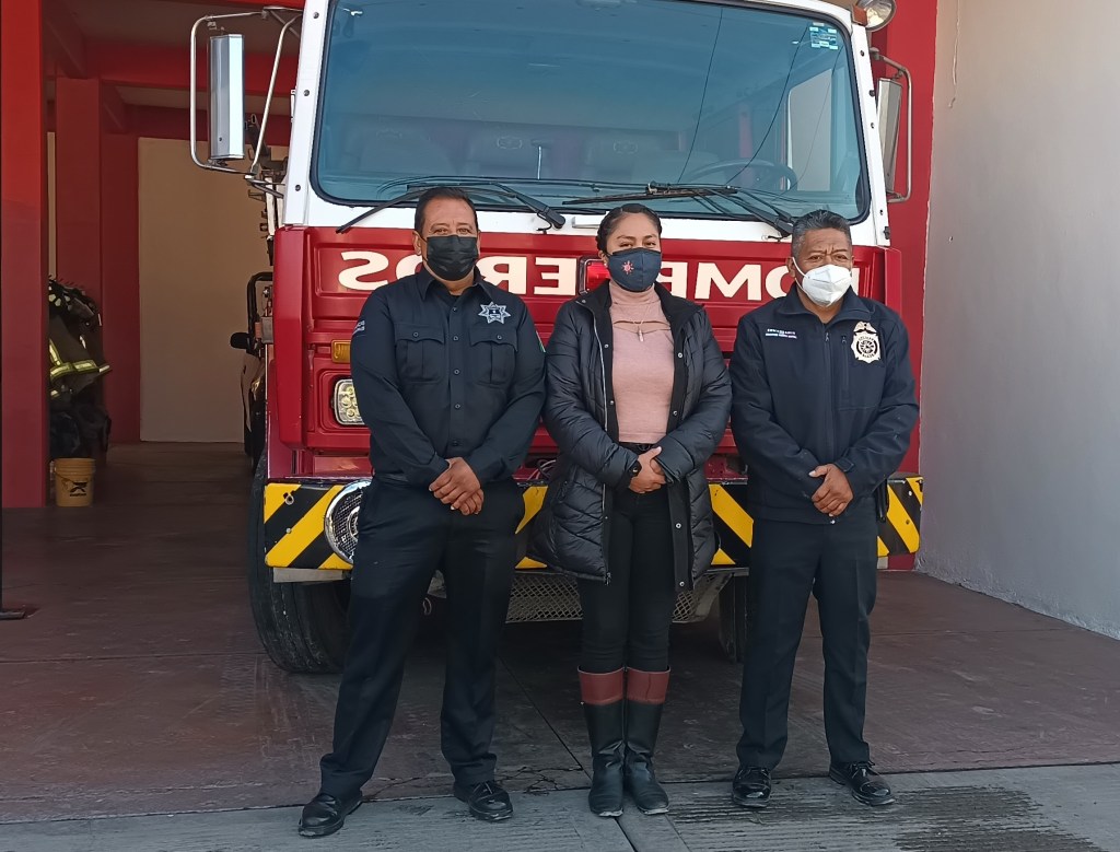 Durante su primera visita a la estación de bomberos, la presidenta municipal recomendó realizar las revisiones en los negocios y los centros de trabajo en el municipio bajo las medidas sanitarias que persisten por la pandemia provocada por el Covid-19.