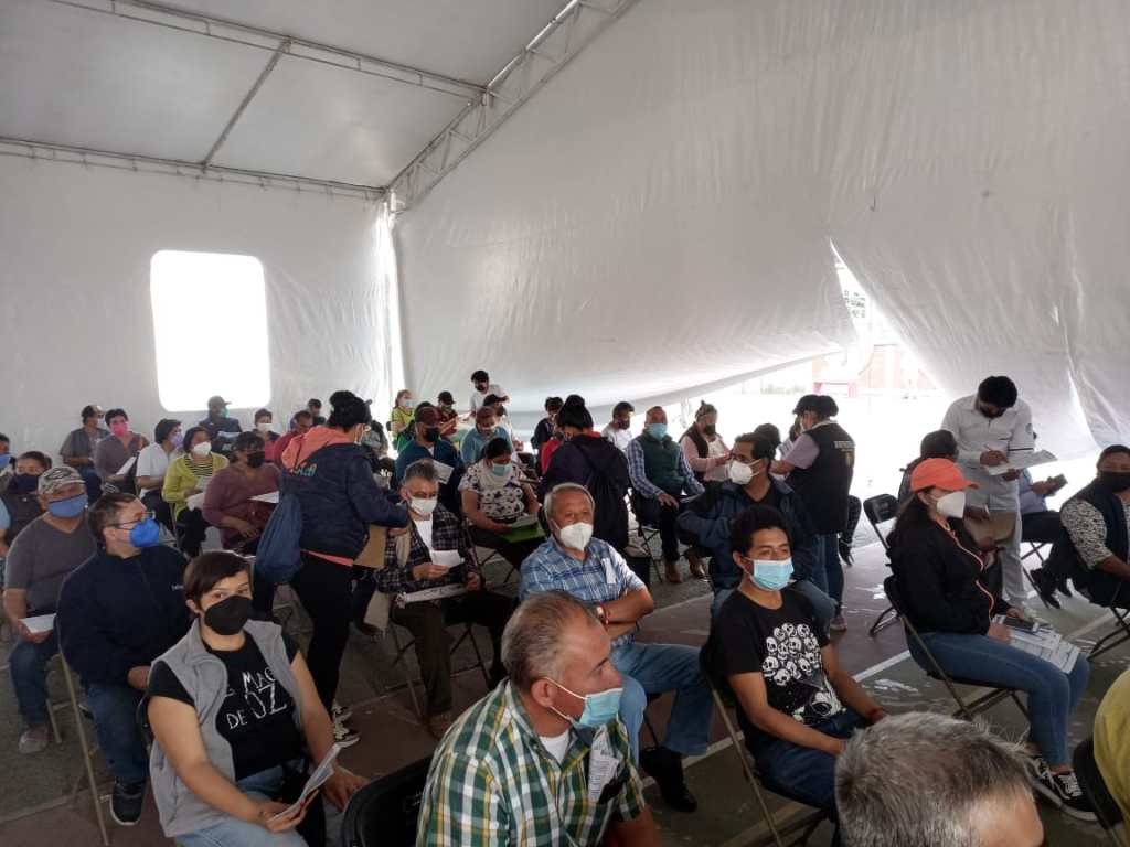 Texcoco, Edomex. Adultos de 50 a 60 años de edad y personas que iniciaron su esquema de vacunación, fueron vacunados los días 25, 26 y 27 de enero del 2022, en el deportivo «Silverio Pérez», lo que permitió avanzar en el proceso para proteger a más texcocanos contra la Covid-19.