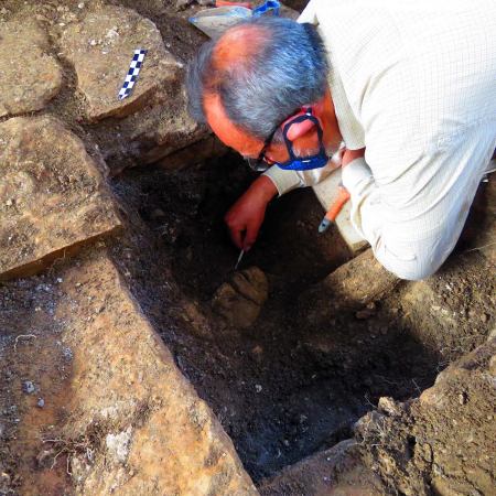 Descubren en Palenque una cabeza estucada del joven dios del maíz, vinculada a un depósito ritual