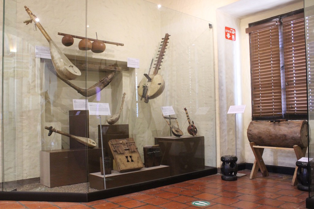 En esta parte de la exhibición se aprecian el mvet (arpa cítara), los ancestros de la guitarra: la cora y el ngoni; del piano: sanza o kalimba, y de la marimba: balafón; además, el djembé (uno de los primeros membranófonos), así como el tam tam (similar al teponaxtle), utilizado para enviar mensajes a 15 kilómetros de distancia, y el arpa egipcia, cuyo origen se remonta, por lo menos, a 3000 a.C.