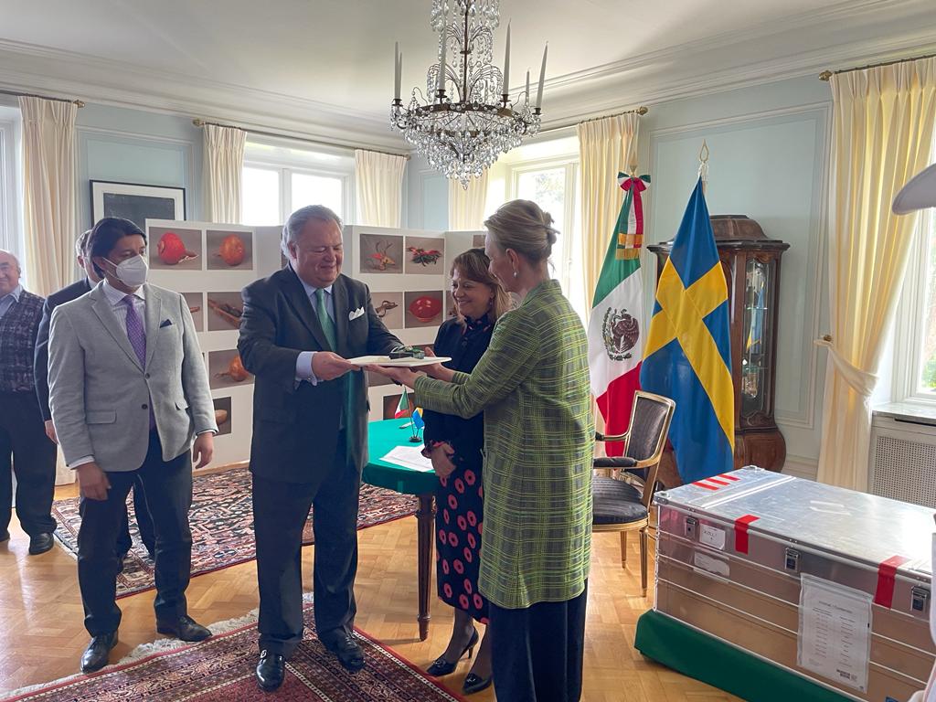 La ceremonia fue presidida por la subsecretaria para Asuntos Multilaterales y Derechos Humanos de la Secretaría de Relaciones Exteriores (SRE), Martha Delgado Peralta; el embajador de México en Suecia, Francisco del Río López; el director general de Derechos Humanos y Democracia de la cancillería mexicana, Cristopher Ballinas Valdés; y la directora general del Museo de la Cultura del Mundo de Gotemburgo, Ann Follin.