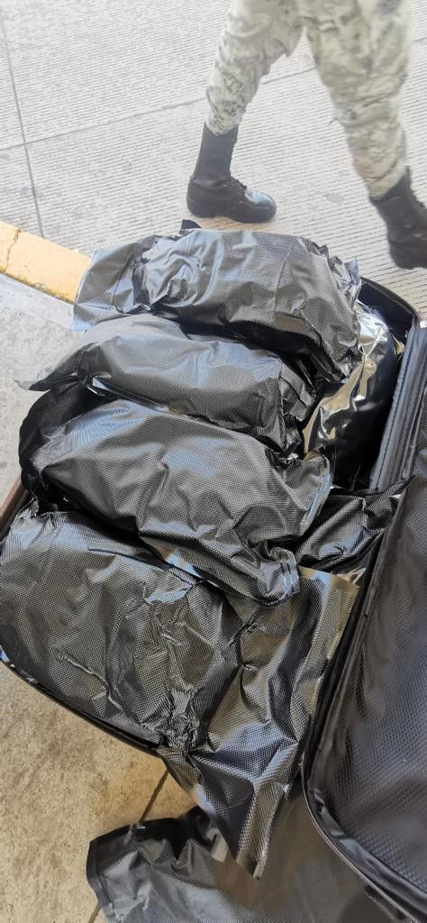 Un seguimiento ocular al vehículo permitió identificar una caja de cartón en el asiento trasero del auto. En la inspección detallada se encontraron tres maletas transportadas en la cajuela, las cuales contenían los paquetes con hierba verde con características similares a la marihuana.