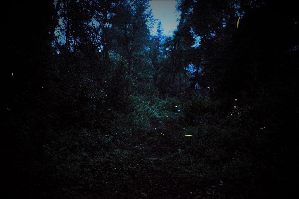 Mientras las luciérnagas se cortejan, la lluvia empapa el bosque y escurre por los impermeables de los visitantes que deben guardar total discreción para compartir aquel instante en el que los escarabajos multiplican la vida.