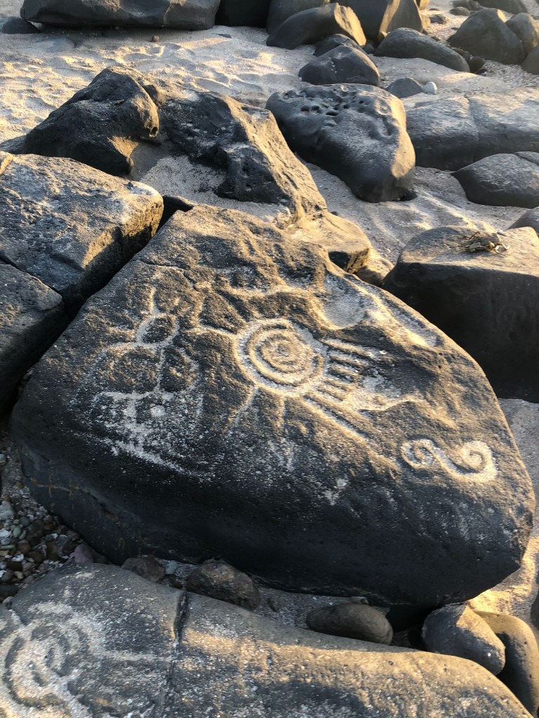 Sinaloa, México. Las Labradas, sitio de belleza singular por los grabados rupestres que se distribuyen en la línea de costa del Pacífico, al sur de Sinaloa, dará la bienvenida al verano. Las antiguas figuras humanas en éxtasis que aparecen en sus rocas, son testimonio de la consagración de este lugar al solsticio, fenómeno más visible por su cercanía con el trópico de Cáncer, línea imaginaria que se halla 30 kilómetros al sur.