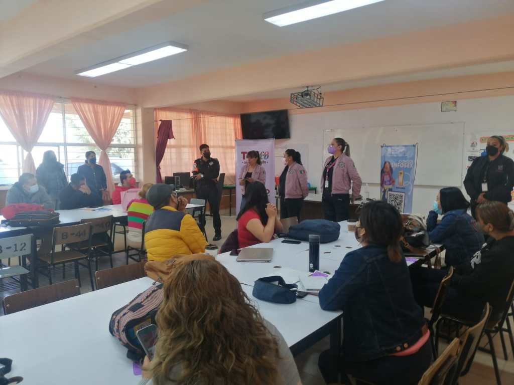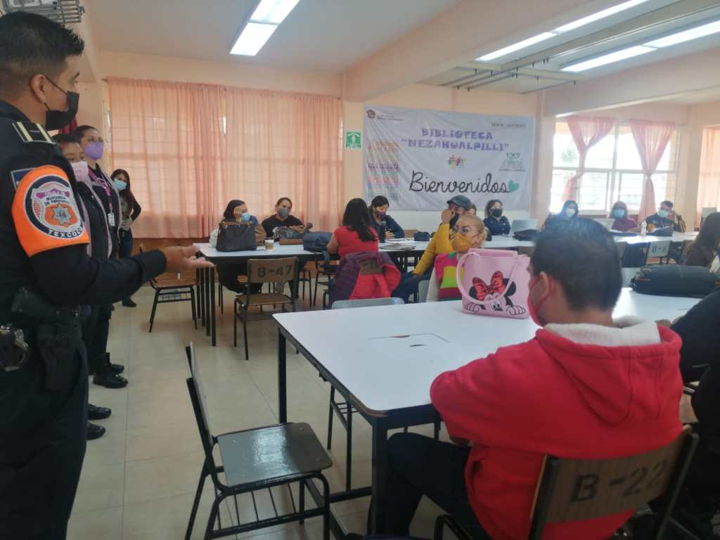 Texcoco, Edomex. Autoridades municipales de Texcoco realizan asesorías informativas sobre violencia de género y el buen uso de la aplicación ALER-TEX, para 49 maestras y maestros de la escuela Secundaria Técnica No. 116 “Nezahualpilli” en el Fraccionamiento de San Martín en el municipio de Texcoco.