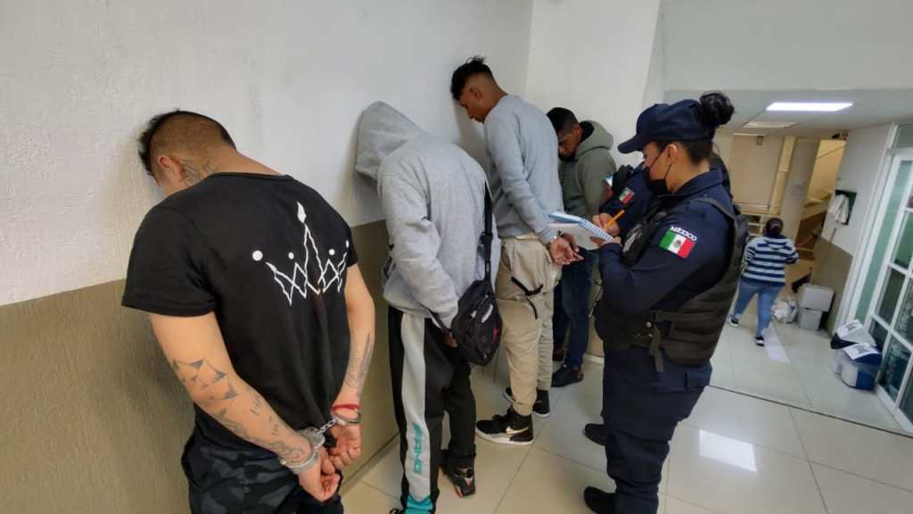Tras varios minutos se presentó el primer respondiente por parte de la policía, y dos minutos después llegó el Grupo Especial de Operaciones para entrar a la casa y detener a cinco sujetos. Se trata de Edgar A., de 26 años de edad; Juan José H., de 18; Manuel B., de 21; Jesús V., de 22; y el menor Daniel A., de 16 años de edad. Dos de los detenidos refieren vivir en Ciudad Nezahualcóyotl y el resto en Chimalhuacán y fueron trasladados a la Fiscalía para ser puestos a disposición ante el Ministerio Público.
