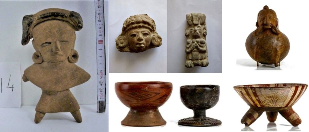 Entre las piezas recuperadas se encuentran estatuillas, ollas, copas y figurillas antropomorfas, entre otras, que pertenecen a diversas culturas y épocas prehispánicas de México.