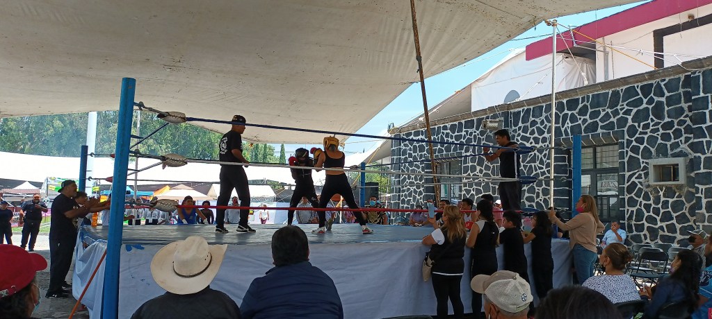Las funciones de box y lucha libre se narraron a un costado del palacio municipal donde familias enteras se dieron cita para apoyar a sus mejores exponentes.