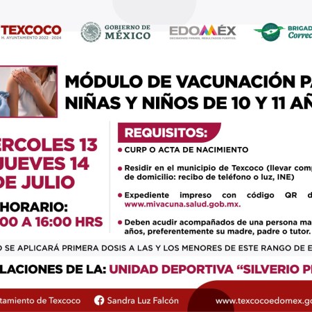 11 julio, 2022 Antac Noticias 13 y 14 de julio se vacunará solo a menores de 10 y 11 años de edad en Texcoco