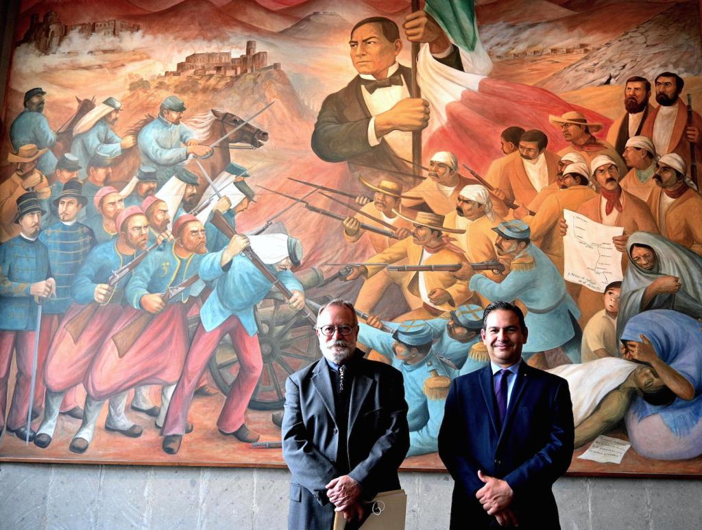 Sobre el autor del mural, mencionó que hace medio siglo, enmarcados en el recuerdo juarista, se realizó un abanico de actividades, entre ellas, el maestro González Orozco pintó la obra aludida, segunda de un díptico dedicado a la Gran Década Nacional.