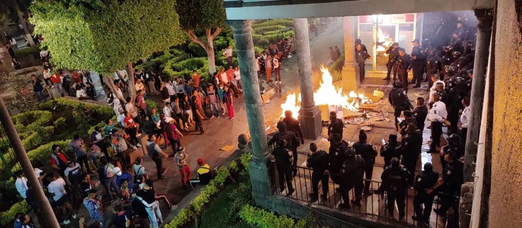 No obstante, este grupo de personas y otras tantas lidereadas por la C. Guadalupe Castro Aparicio continuaron con las agresiones verbales afuera de la Presidencia Municipal, y no sólo eso, sino que también se robaron tres motocicletas de la Dirección General de Seguridad Ciudadana y Tránsito Municipal y las vandalizaron. Aunado a ello, estos transgresores de la ley, iniciaron un conato de incendio en la entrada principal, cuyo actor intelectual fue el C. Silvestre López Cornejo, poniendo en peligro no sólo a los servidores públicos, sino además a jóvenes, mujeres y adultos que se encontraban en las inmediaciones del lugar.