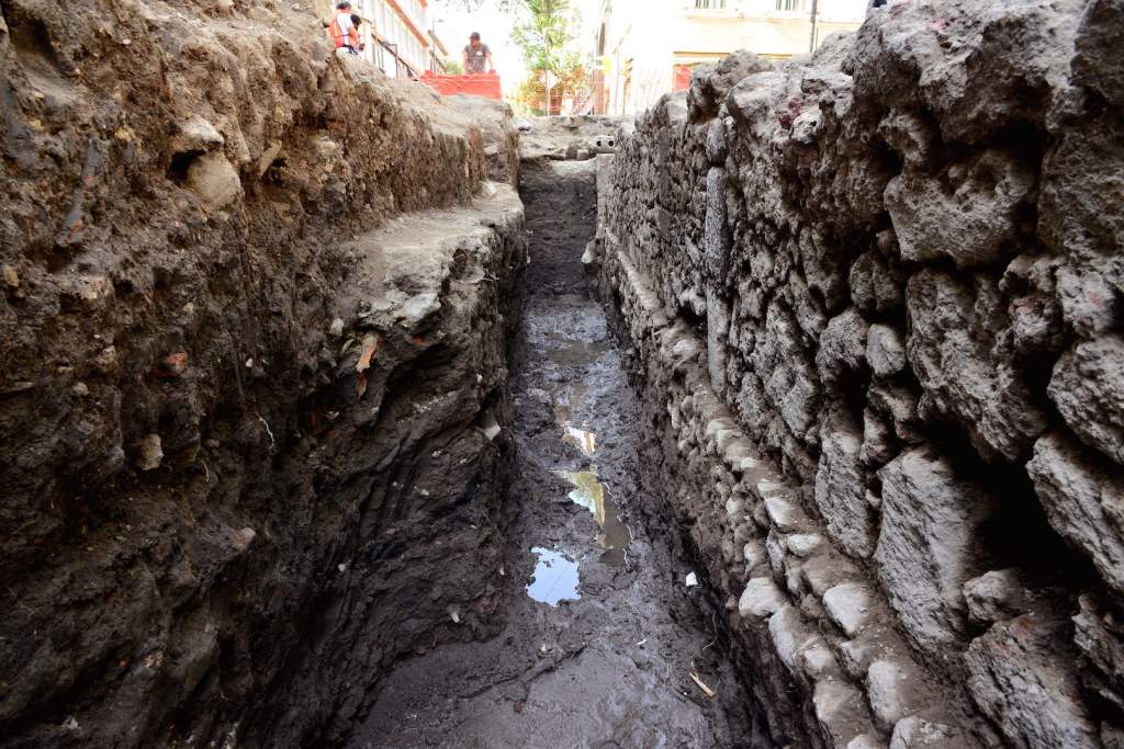 “Tenemos remanentes del acabado del muro en el lado sur: un estuco de cal y arena, y también registramos restos del piso, porque esta pared debió contar con una buena cimentación debido a la inestabilidad del terreno. Recordemos que nos encontramos en una sección de la parcialidad Cuepopan, asentada en un suelo fangoso de México-Tenochtitlan, por eso –ya para la época colonial– sería nombrada: La Lagunilla”.