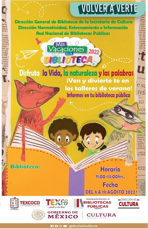 Texcoco, Edomex. Con una oferta cultural incluyente, la Dirección de Cultura del gobierno municipal de Texcoco da apertura a los cursos de verano en las 16 bibliotecas de las diferentes comunidades, así como en el espacio Cultural “Carlos Ometlochtli” (ECCO), en la comunidad de La Trinidad y el Centro Cultural “Tezoncalli en San Luis Huexotla, con actividades para niños, jóvenes, personas de la tercera edad, así como personas con alguna discapacidad.