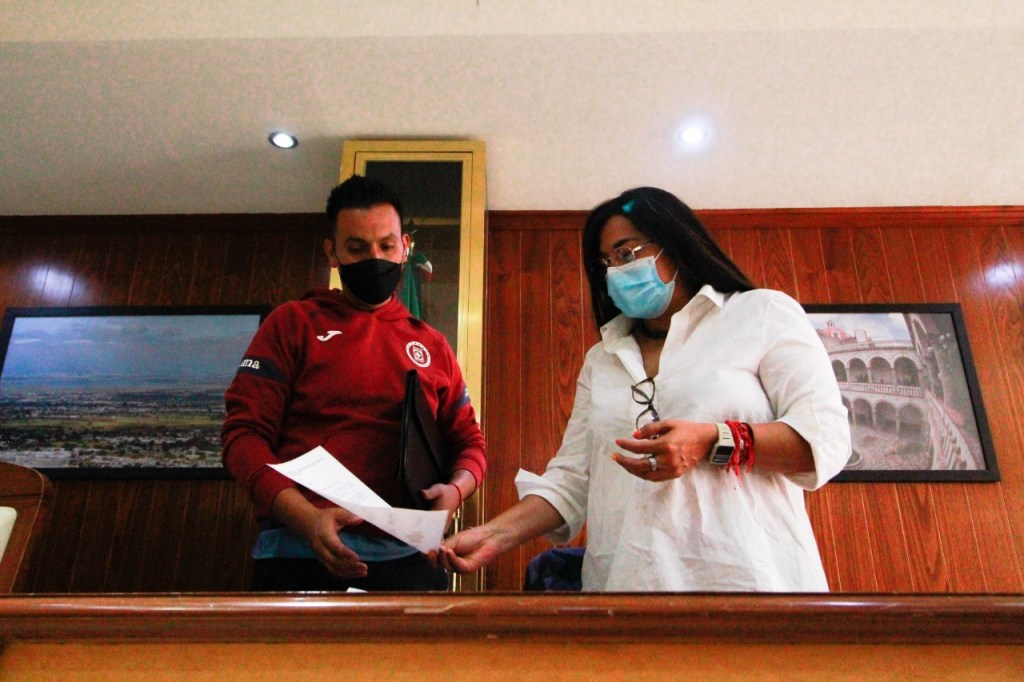 La presidenta municipal Sandra Luz Falcón Venegas, realizó la entrega del apoyo en efectivo, mismo que servirá para que los seleccionados nacionales Diego Eduardo Villamar Ortega y Jorge Morales Gil puedan realizar su viaje a Turquía en donde representarán a México como deportistas de alto rendimiento.
