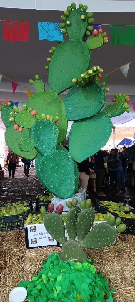 Con una vistosa portada en la entrada principal de la iglesia de este municipio, se puede recorrer el pabellón destinado a los productores locales y las múltiples variedades tanto de tunas, xoconostle y nopal se pueden degustar.