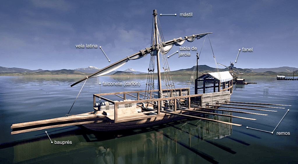 “Entonces, por parte de la alianza hispano-indígena –pues tenían un gran apoyo de Tlaxcala y Texcoco–, se va a desarrollar un tipo de navío para resolver los problemas de navegar en aguas poco profundas, sin vientos fuertes para el uso de la vela, con una quilla discreta en la parte baja, pero con una artillería en la proa para romper las calzadas y los diques, y así ocasionar inundaciones y la contaminación del agua dulce que llegaba a las ciudades mexicas mediante el acueducto de Chapultepec”.