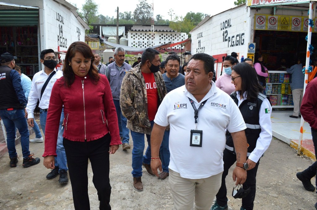 La Alcaldesa Flores Jiménez y representantes de Protección Civil federal, estatal y municipal, del CENAPRED, de Seguridad Ciudadana y de Gobernación Municipales, realizaron un recorrido por el tianguis de la pirotecnia, ubicado en Avenida Central, colonia Guadalupe, donde dialogaron con los comerciantes y verificaron que el material explosivo que se oferta esté en vitrinas, que haya extinguidores, palas, picos, tambos de arena y agua como lo marca la norma.