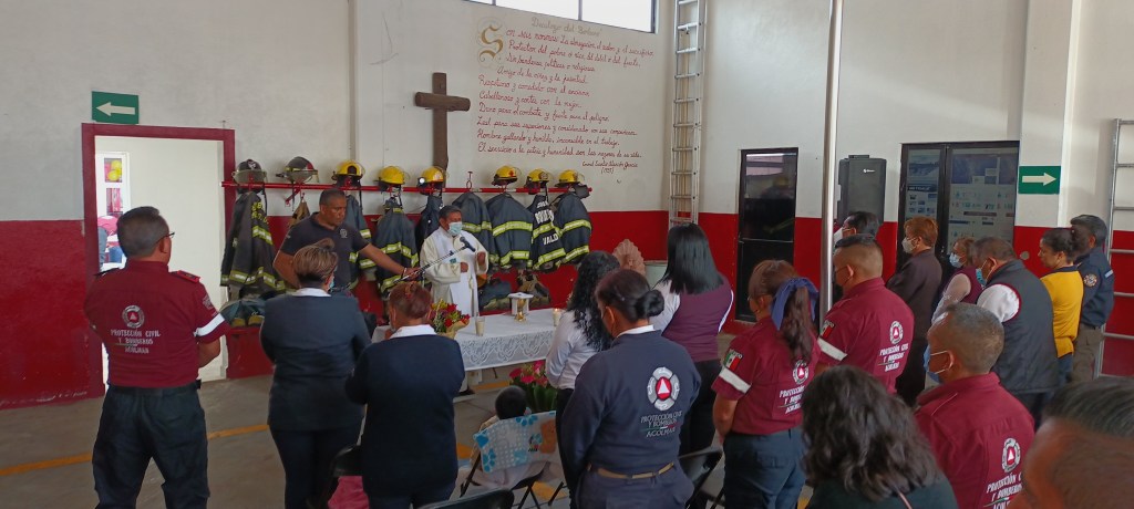 Acolman, Edomex. Con una misa de acción de gracias en las instalaciones de la estación de bomberos en el municipio de Acolman, elementos de esta corporación celebraron el Día Nacional del Bombero y junto con sus familiares reflexionaron sobre el importante papel que desempeñan dentro de la sociedad mexicana.