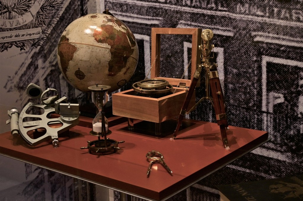 Las piezas que ahora comparte la Semar con el público del MNH, principalmente instrumentos de navegación, como una corredera de barquilla, un cronómetro marino de la segunda mitad del siglo XIX, un reloj de arena, un sextante de 1969, un globo terráqueo, así como un pupitre y un libro de arte naval de la primera mitad del siglo XX, son testimonio de la impartición de conocimientos especializados en ciencias náuticas.