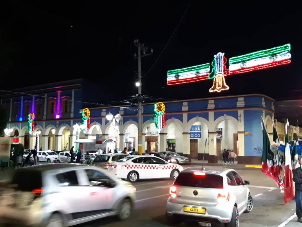 Texcoco, Edomex. Texcoco se viste de luces para realizar los festejos patrios con más de 40 adornos alusivos que iluminan las principales calles del municipio, preparándose luego de dos años de pandemia para las fiestas que este año organiza el gobierno municipal.