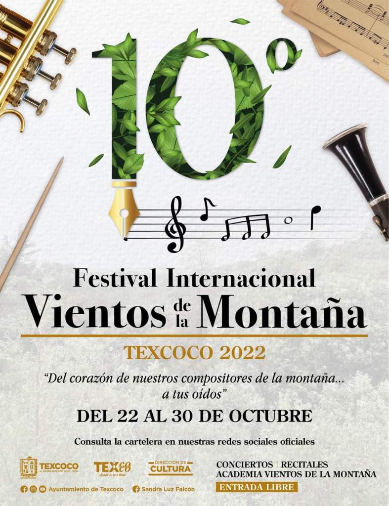 Texcoco, Edomex. El pleno del cabildo de Texcoco aprobó por unanimidad el presupuesto para la realización del Festival Internacional Vientos de la Montaña, que se realizará del 22 al 30 de octubre y que este 2022 cumple 10 años de presentarse al público, por lo que engalanará esta fiesta de la música el Tenor Fernando de la Mora, que ofrecerá un concierto de gala en la Alameda de Texcoco con acceso gratuito para el público.