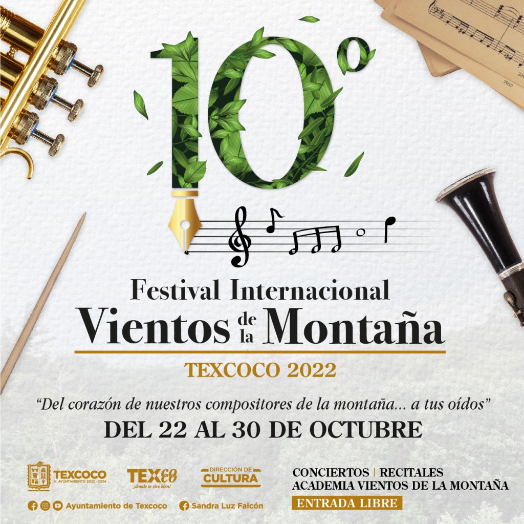Texcoco, Edomex. Este sábado 22 de octubre del 2022, inicia el Festival Internacional Vientos de la Montaña Texcoco 2022, con un espectacular desfile con las cuadrillas de sembradoras y sembradores de las diferentes comunidades acompañadas por la música de las bandas: “Cerro frío”, “Los Gutiérrez”, “Meraz” y la “Costeñita” partiendo del Asta bandera a la Fábrica de Artes y Oficios (FARO) de Texcoco, en donde la presidenta municipal de Texcoco Sandra Luz Falcón Venegas inaugurará el evento más representativo de la música texcocana.
