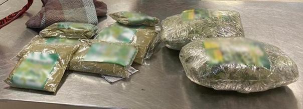 A través de una máquina de rayos X, integrantes de ambas instituciones detectaron dentro de una maleta varios paquetes irregulares de material orgánico, por lo que procedieron a entrevistarse con la viajera.