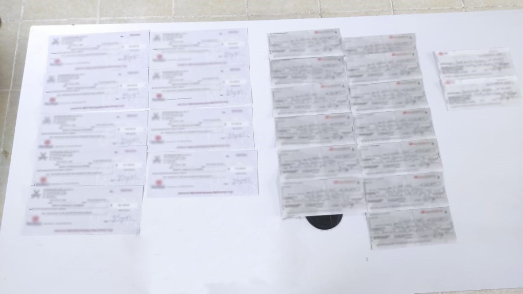 La camioneta fue inspeccionada y se localizaron alrededor de 24 cheques por la cantidad aproximada de siete millones 600 mil pesos, sin la documentación para acreditar la legal procedencia, tenencia o importación, por lo que detuvieron al automovilista.