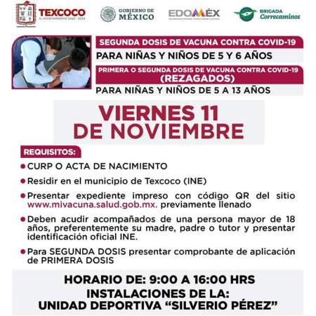 9 noviembre, 2022 Antac Noticias Viernes 11 de noviembre vacunarán a niños de 5 a 13 años de edad en Texcoco