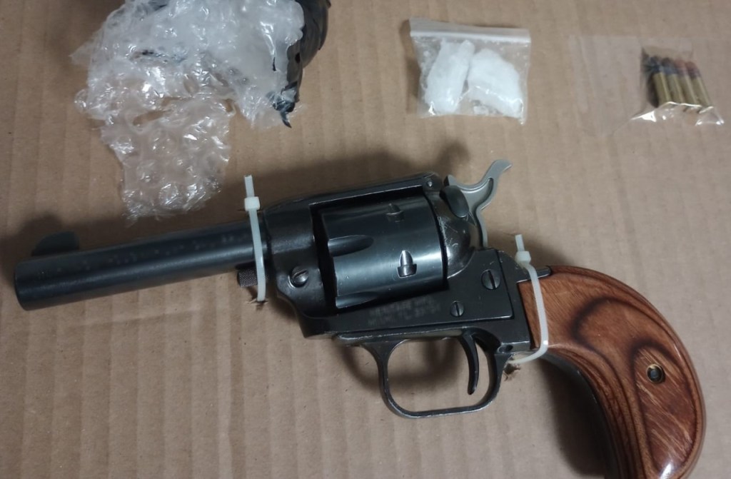Los elementos solicitaron al chofer llevar a cabo una revisión a su vehículo, accediendo de manera voluntaria, y localizaron un arma de fuego tipo revólver, cargada con cartuchos útiles, aproximadamente 8 mil 800 dólares americanos, además de un envoltorio con una sustancia blanca y granulada con las características propias del cristal.