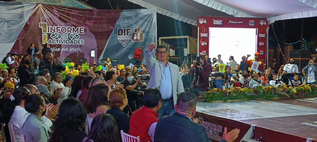Acolman, Edomex. Mediante un video informativo introductorio, dio inicio el primer informe de actividades de Osvaldo Cortés Contreras, presidente honorario del Sistema Municipal de Desarrollo Integral para la Familia (SMDIF), del ayuntamiento de Acolman.