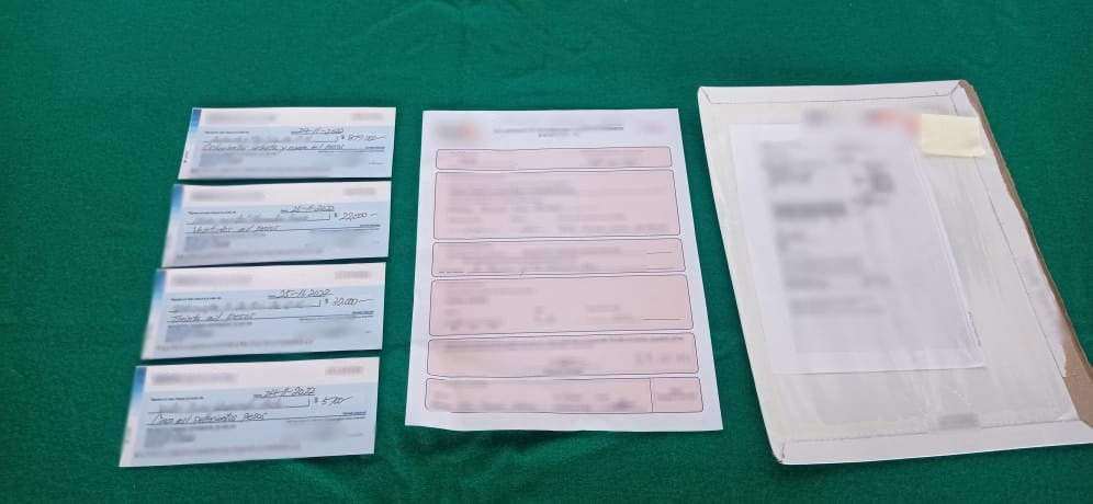- 1 cheque por un total de 22 mil pesos.