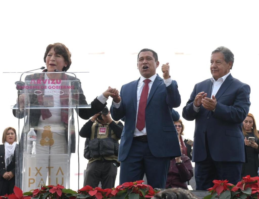 A Ixtapaluca, Delfina Gómez, legisladora de la 4T, en compañía de Higinio Martínez Miranda y la líder local de MORENA, Martha Guerrero, se presentaron para acompañar a Felipe Arvizu, quien afirmó ante miles de ciudadanos que se dieron cita que «ustedes confiaron su voto en este gobierno y nosotros a cambio les hemos dado acciones que se notan, acciones contundentes, acciones fuertes».
