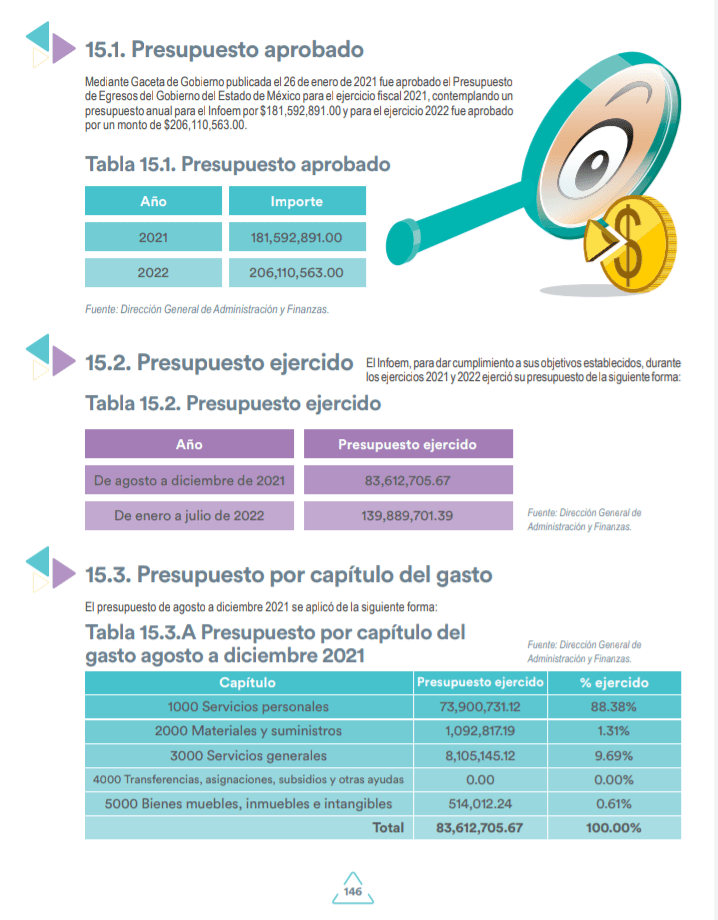 Finalmente hay que señalar que al INFOEM le fue designado para el año 2022, un presupuesto de 206 millones, 110 mil, 563 pesos, 0 centavos.