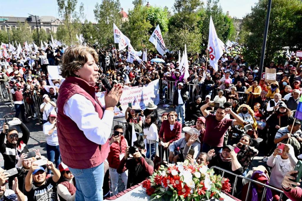 “Han sido 100 años de una oscura noche, pero pronto el Pueblo mexiquense hará que amanezca”, expresó la maestra Delfina Gómez en un emotivo discurso que pronunció ante 10 mil militantes y simpatizantes de la alianza política.
