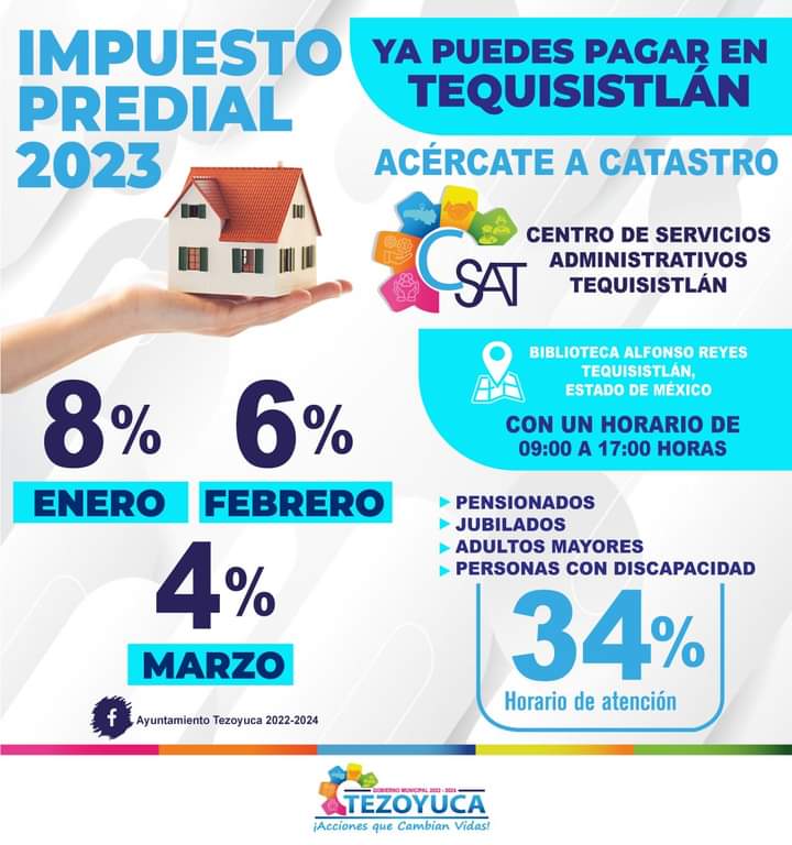 De acuerdo con información oficial, el gobierno local mediante redes sociales e información ofrecida en la presidencia municipal, los habitantes podrán gozar de varios descuentos estableciendo para el mes de enero el 8 por ciento de descuento; para febrero el 6 por ciento y para marzo el 4 por ciento, así como el 34 por ciento a personas jubiladas, pensionados, adultos mayores y perdonar con discapacidad.