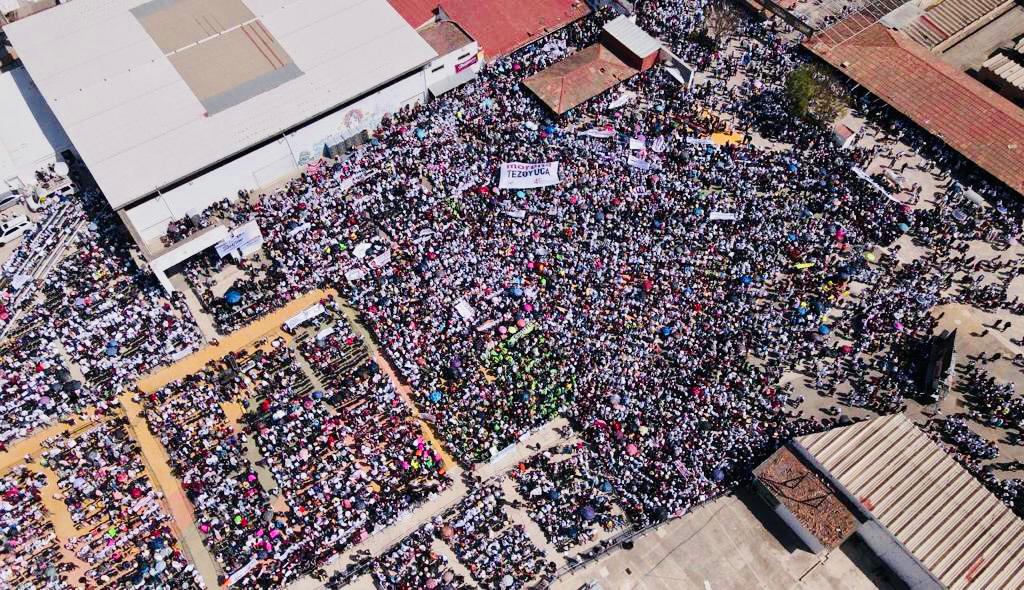 En su tierra natal y con un recinto abarrotado por 40 mil militantes y simpatizantes, la maestra Delfina Gómez lanzó un claro mensaje de esperanza, en su cierre de precampaña en Texcoco.