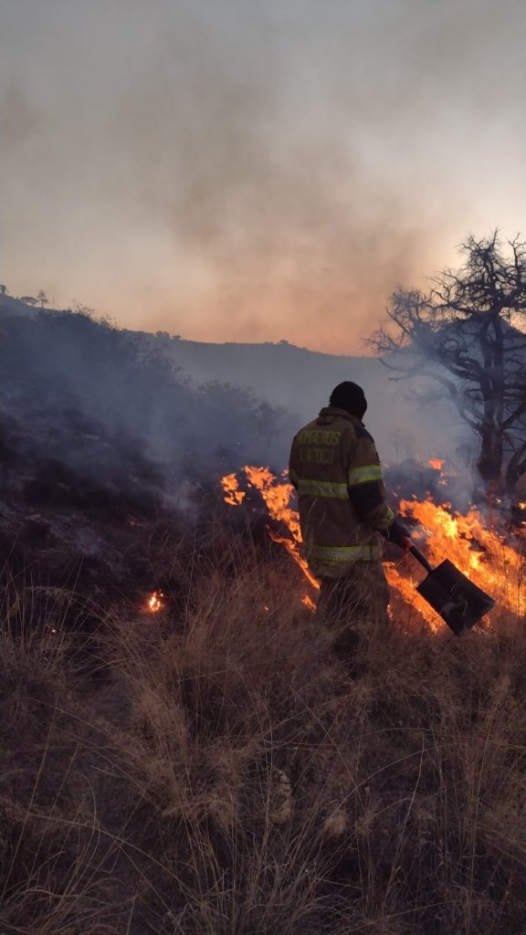 Texcoco, Edomex. Trabajando de manera coordinada, elementos del cuerpo de bomberos de Texcoco, lograron controlar y sofocar el incendio que la tarde del pasado martes se registró en el cerro del Tezcutzingo, registrado en tres hectáreas de este paraje.