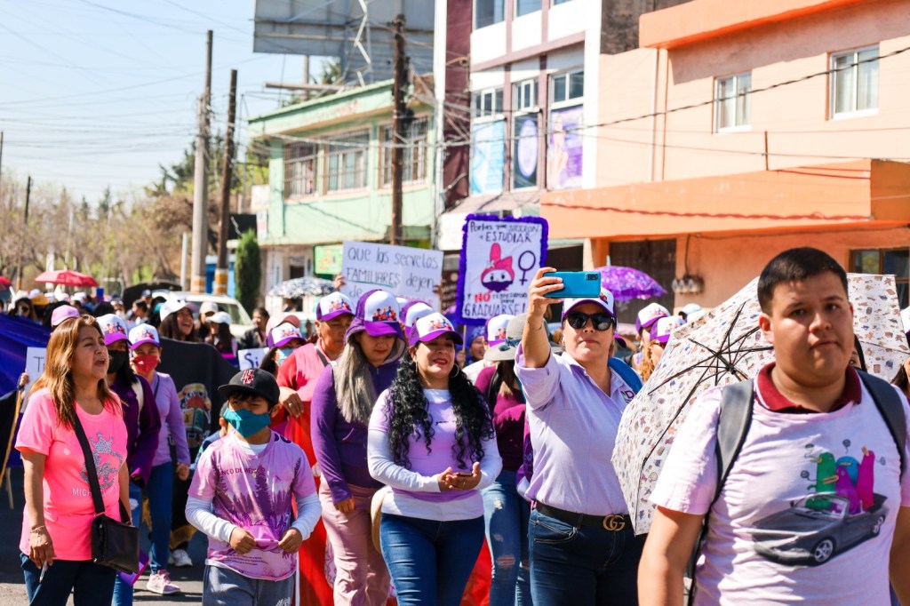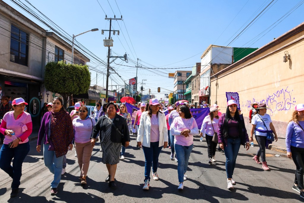 La caminata encabezada por la presidenta municipal de Texcoco Sandra Luz Falcón Venegas, las regidoras Sandra Paola Sánchez González, Sara Iveth Rosas Rosas, Paula Montaño Herrera, Petra Gallegos Pedraza, así como directoras y mujeres de las diferentes áreas del Ayuntamiento, estudiantes de escuelas de nivel medio superior, enfermeras, amas de casa, comerciantes y un grupo de mujeres adultas mayores, estas últimas al frente de todos los contingentes.