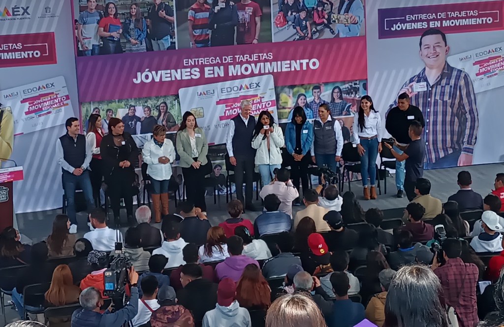 «Jóvenes en Movimiento, ya el día de hoy, con ustedes que están aquí presentes y cerca de 6 mil jóvenes que están recibiendo este apoyo, de 90 municipios del Estado de México, estamos llegando a 52 mil jóvenes”, refirió el mandatario estatal.