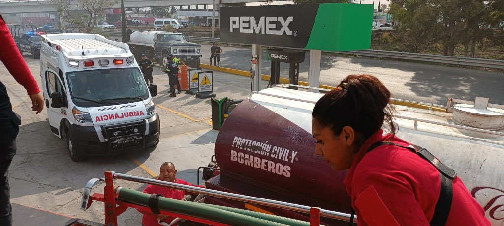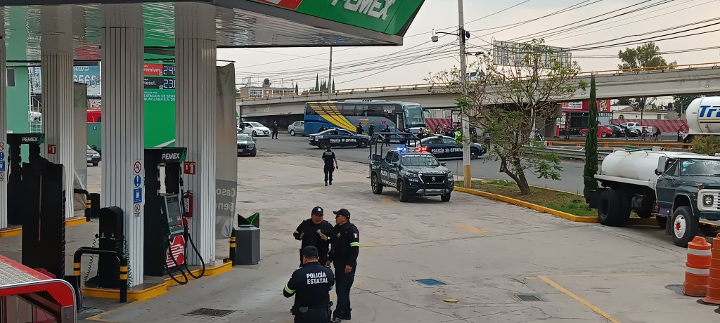 En la zona, policía municipal de Texcoco, estatal y elementos de la Guardia Nacional acordonaron para redirigir el tránsito vehicular que se generó, así como los trabajadores de la gasolinería dejaron de brindar servicio para que los bomberos trabajaran de manera rápida.