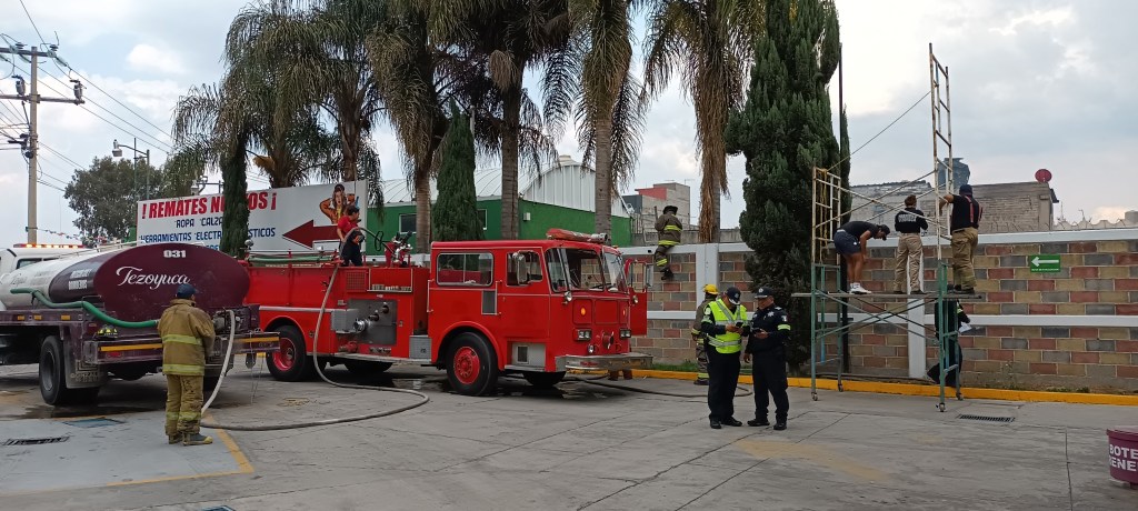 Mientras laboraban, sus similares de Texcoco y Tezoyuca apoyaron para concluir con el siniestro y la remoción de escombros.