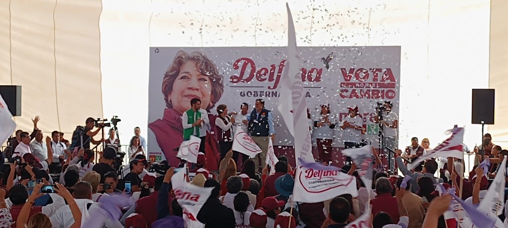 La maestra Delfina Gómez estuvo acompañada por Martha Guerrero, presidenta del Comité Ejecutivo Estatal de MORENA; Mario Delgado, presidente del CEN de MORENA, Higinio Martínez, delegado especial del CEN de MORENA; Óscar González Yáñez, presidente del Partido del trabajo en el Edomex; y José “Pepe” Couttolenc, secretario general del PVEM en el Estado de México.