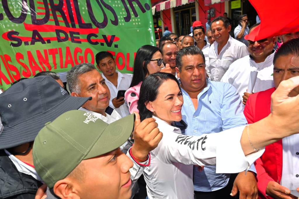 Entre porras, banderines y pirotecnia, la aliancista abrazó y agradeció el apoyo de Eruviel Ávila, exgobernador de la entidad, así como de Jaime Cervantes, diputado local priista y Diego Eric Moreno Valle, presidente municipal de Tianguistenco, por citar algunos.